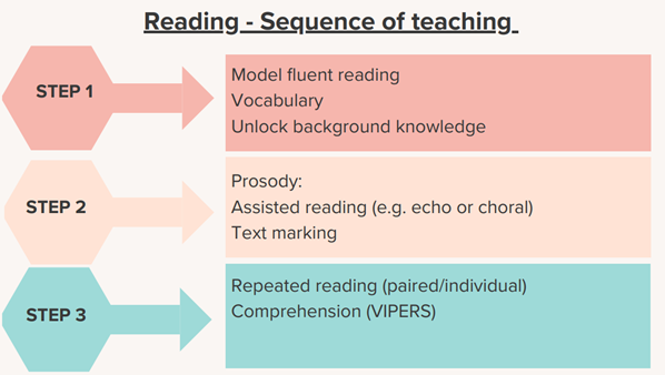 The teaching of reading can be summarised using the following diagram: